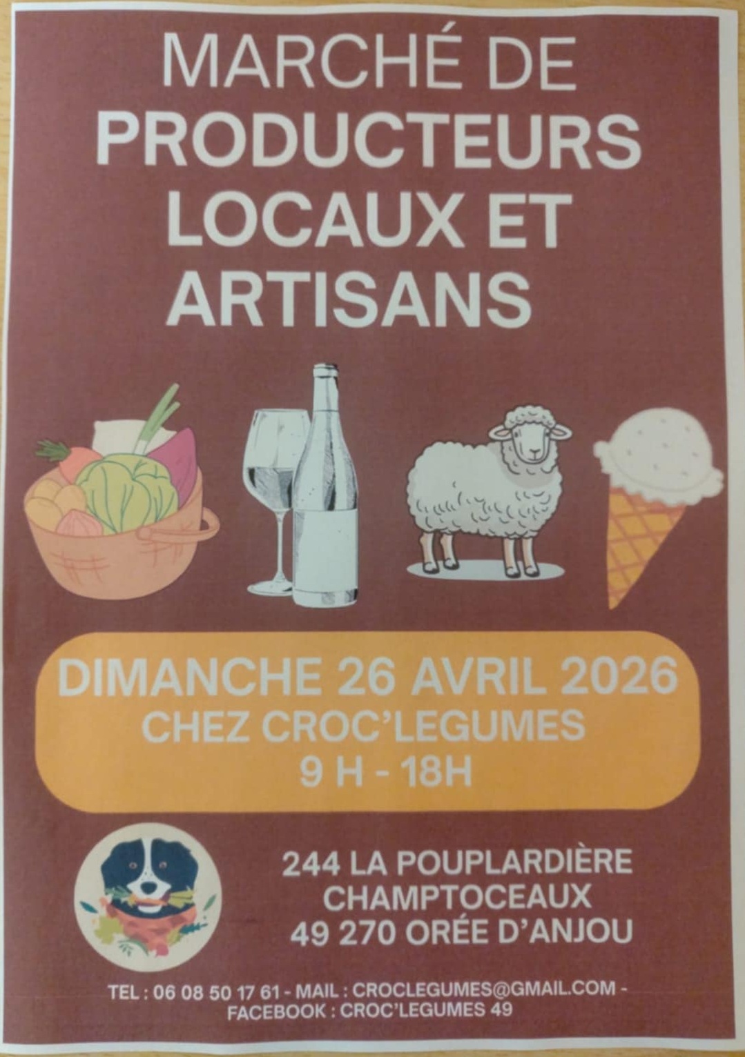 Je serai présente au marché de producteurs et artisans locaux organisé chez Croc’légumes 49, pour une journée placée sous le signe du partage, de la découverte et du savoir-faire local.