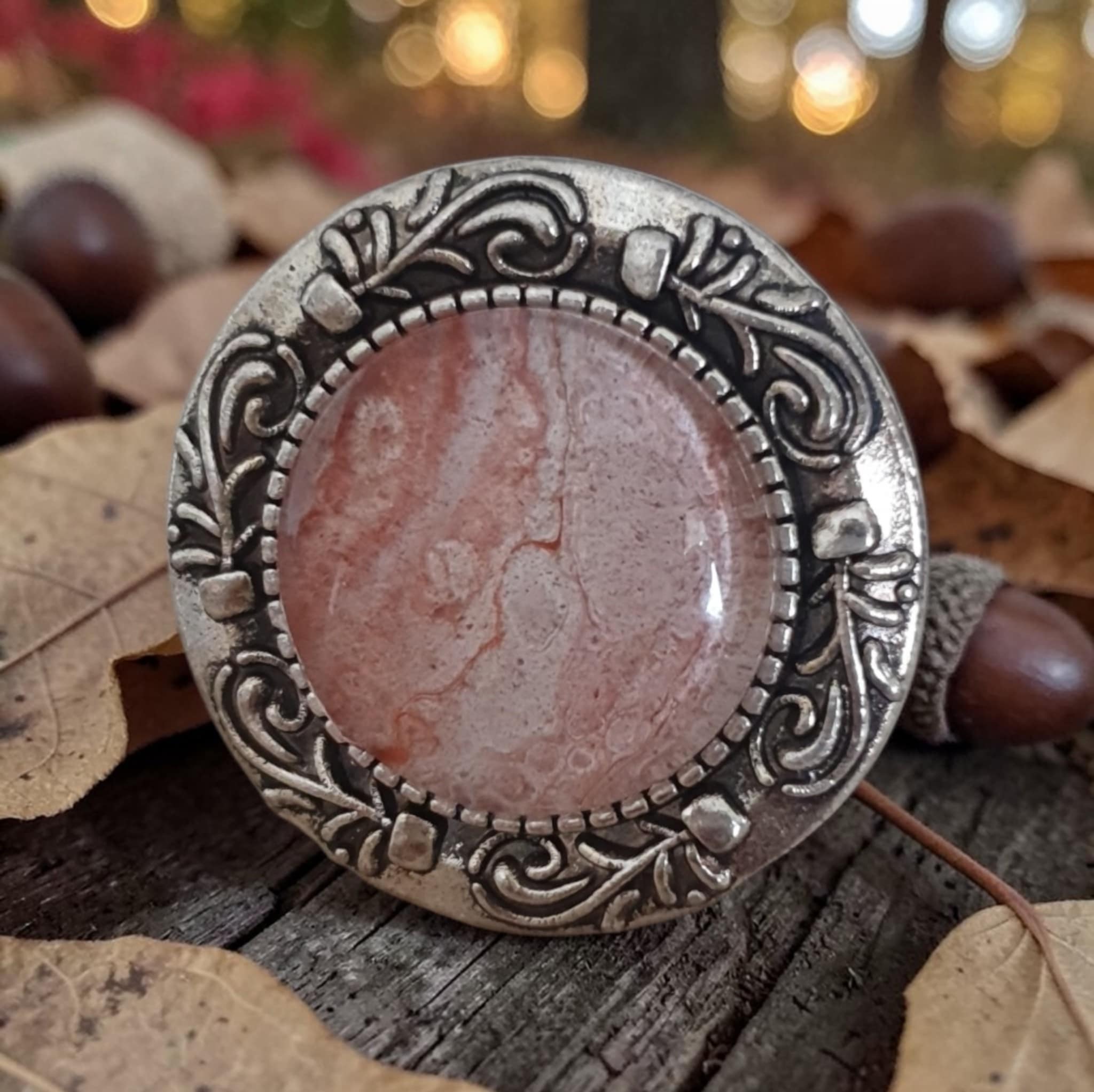 Bague argentée artistique Corolle d’automne – Bijou unique