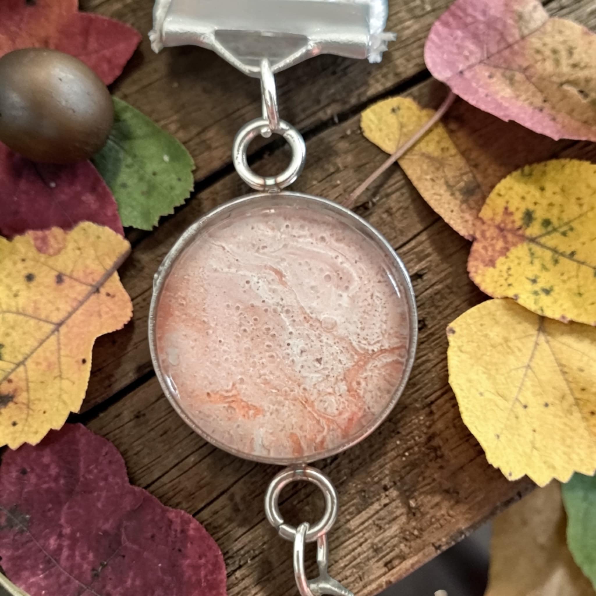 Le bracelet Automne est une création artistique inspirée par les couleurs chaudes de la saison automnale. Les nuances de marron et de marron clair se mêlent harmonieusement grâce à la technique du pouring, créant des effets fluides et organiques qui évoquent les feuilles tombantes et les paysages d’automne. Le bracelet en tissu vient compléter cette création avec douceur, pour un bijou à la fois chaleureux, naturel et apaisant.