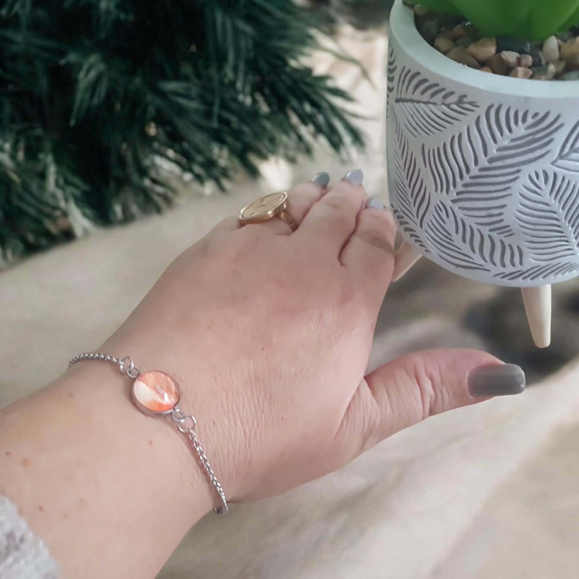 Chaque création étant réalisée à partir d’une peinture originale, les motifs et nuances peuvent légèrement varier, ce qui rend chaque bijou unique.