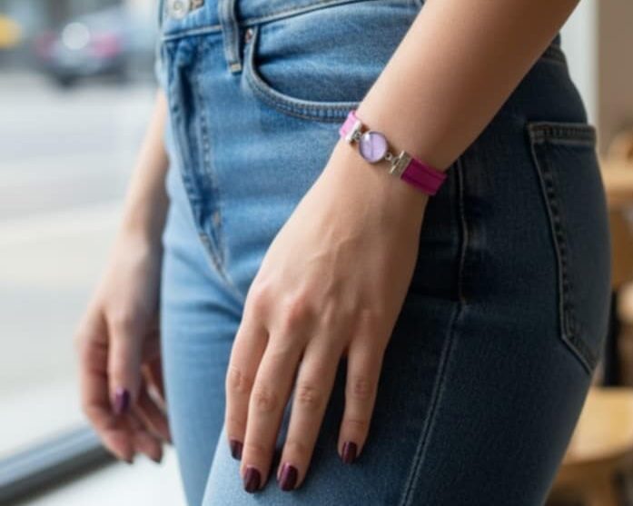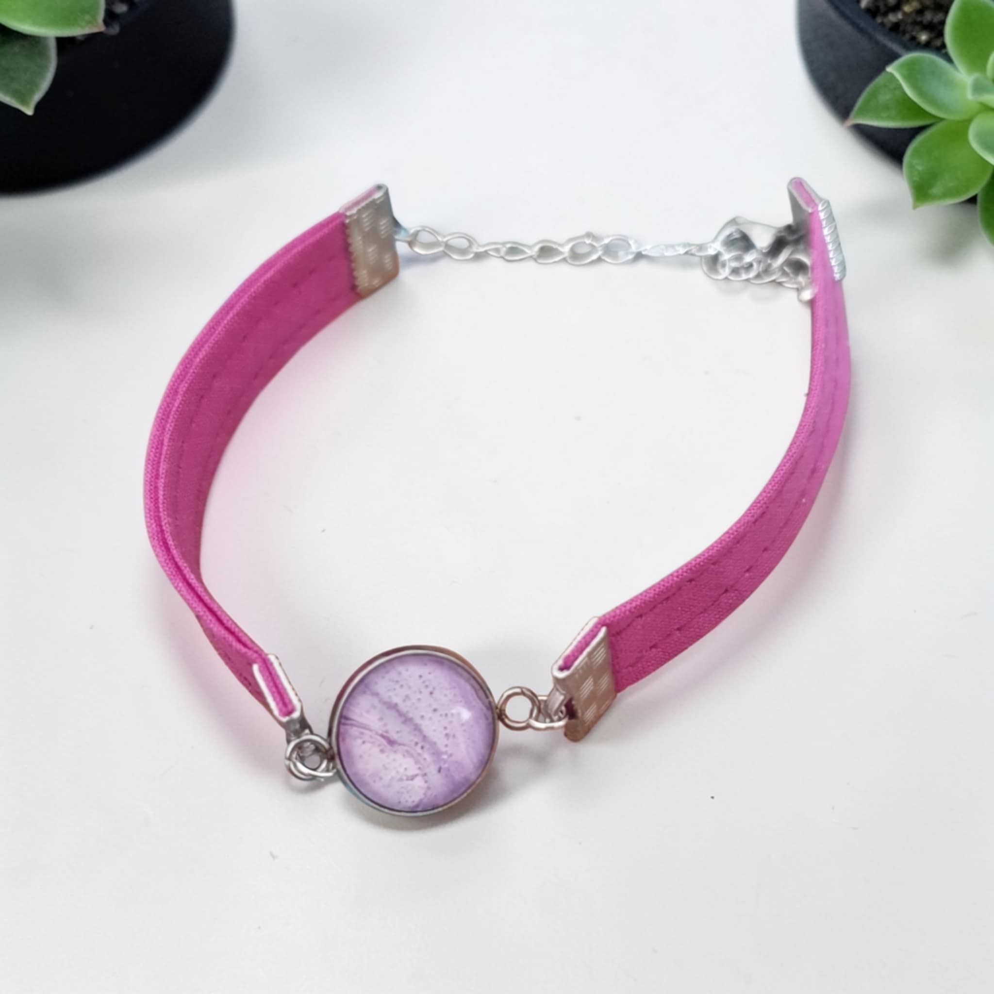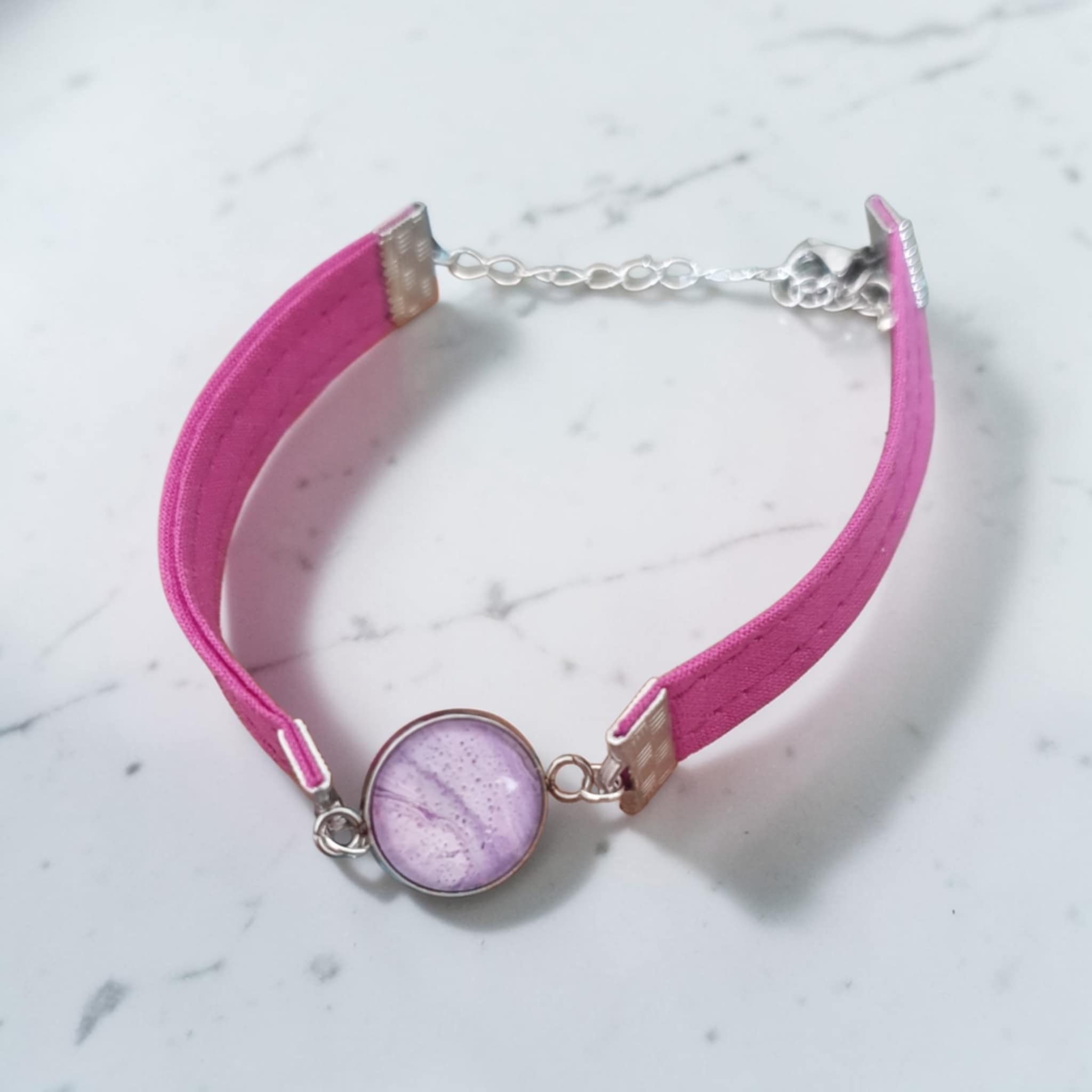 Le bracelet Lilas est une création artistique inspirée de la douceur et de la délicatesse des fleurs printanières. Les nuances de violet se mêlent harmonieusement grâce à la technique du pouring, créant des effets fluides et organiques qui évoquent les pétales de lilas et une atmosphère douce, florale et apaisante.