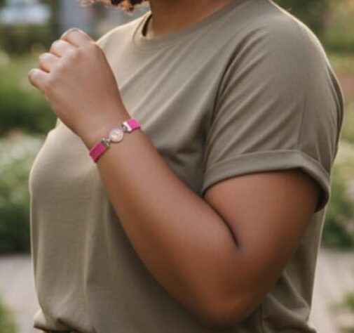 Ce bracelet est également le fruit d’une collaboration artisanale avec Mylcouz’êtes, couturière. Le bijou est monté sur un bracelet en tissu, composé de deux tissus délicatement assemblés, apportant douceur, originalité et confort au porté.