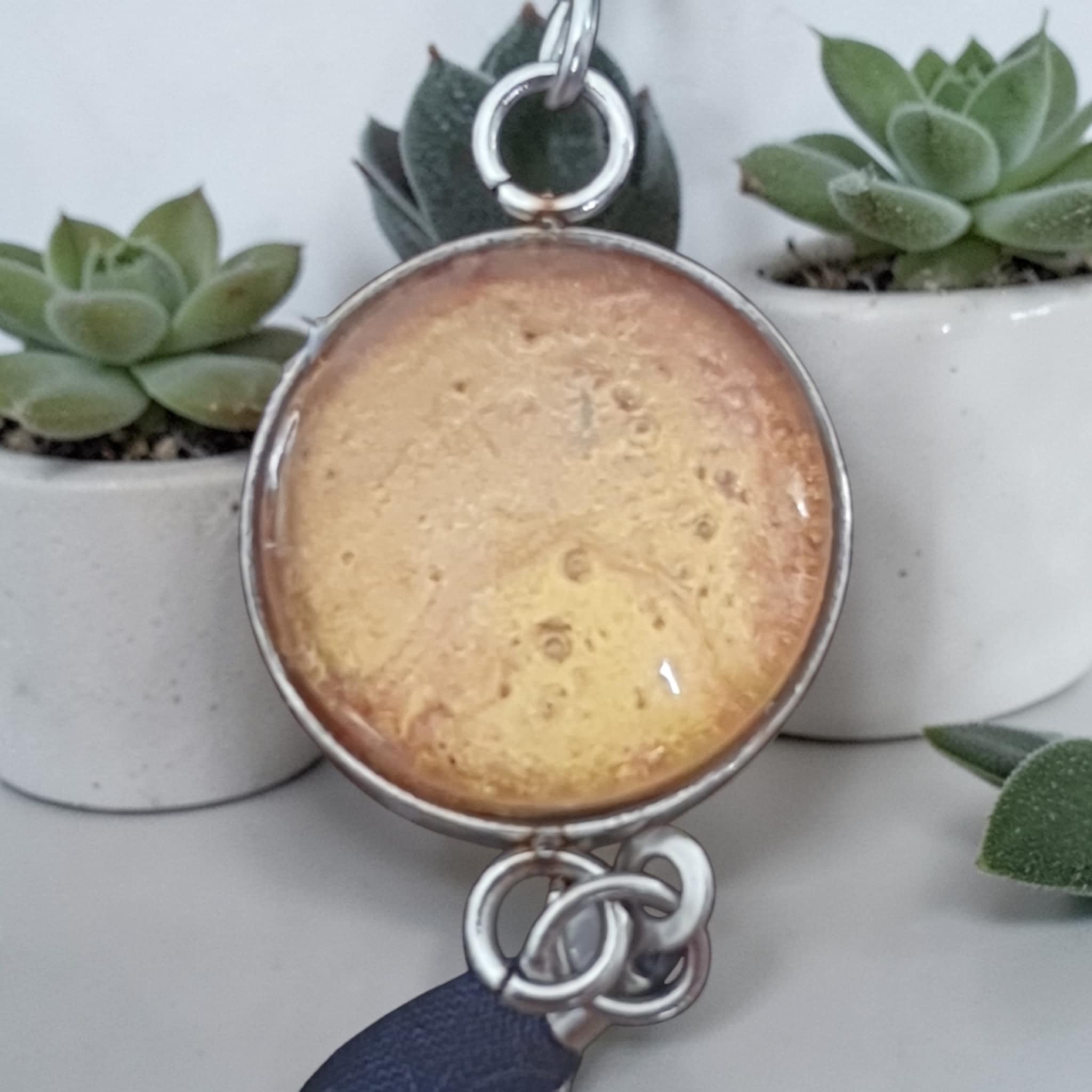 Chaque création étant réalisée à partir d’une peinture originale, les motifs et nuances peuvent légèrement varier, ce qui rend chaque bijou unique.