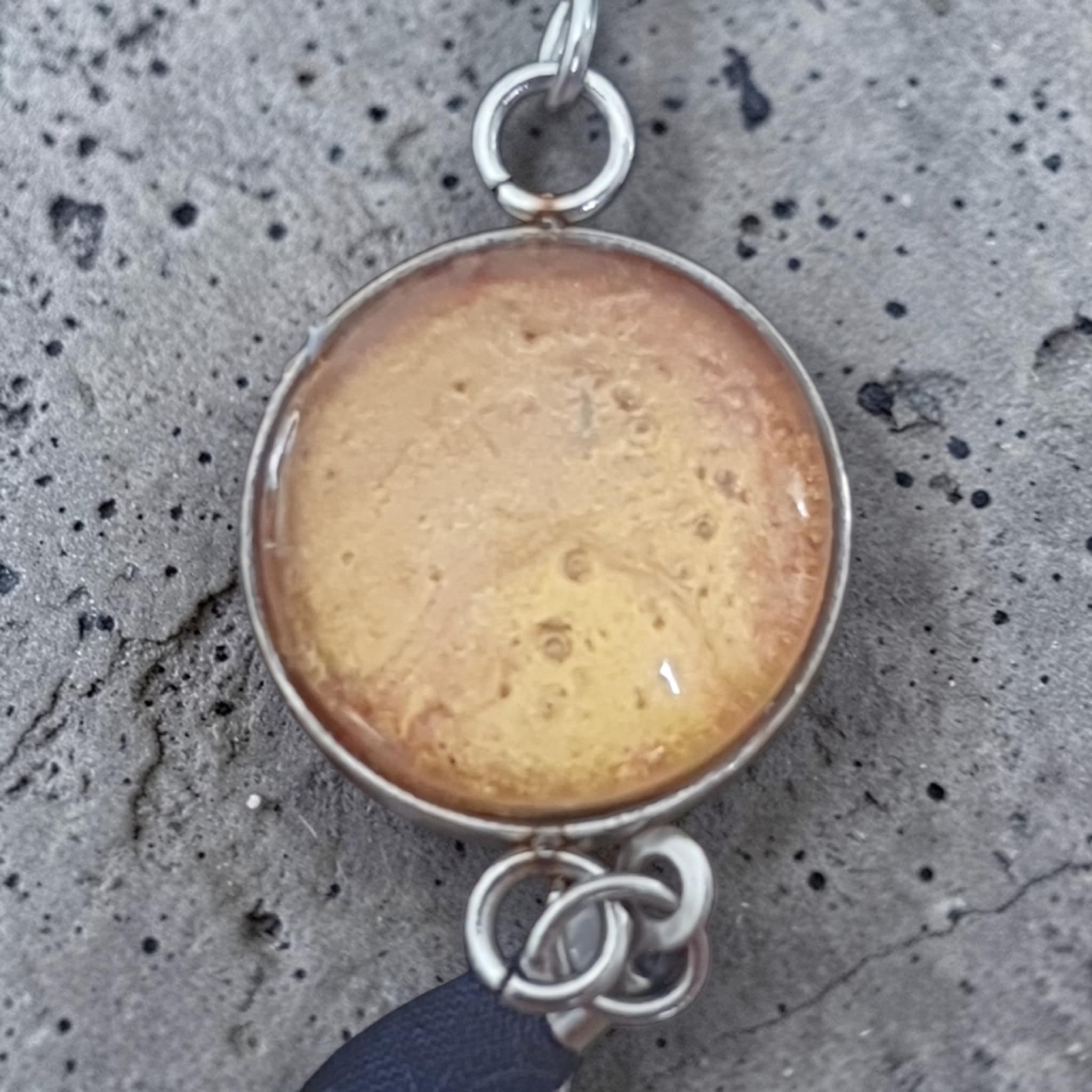 Chaque bijou est réalisé à partir d’un fragment de peinture originale que je crée dans mon atelier. Une partie de l’œuvre est ensuite protégée sous un cabochon en verre afin de préserver la profondeur et les nuances de la peinture.