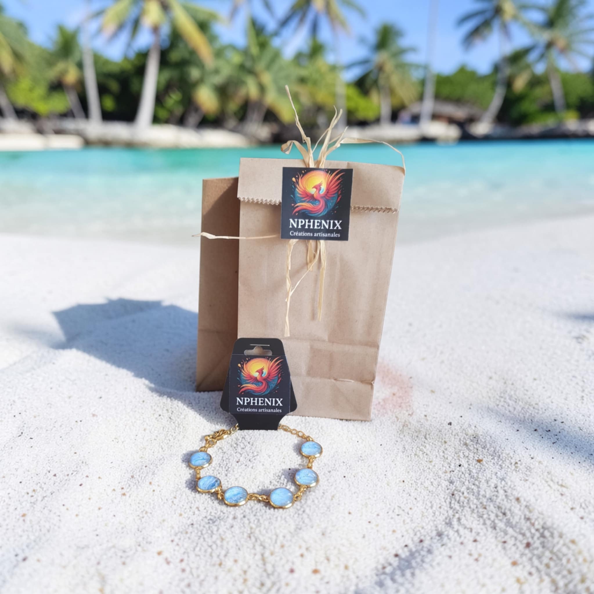 Bracelet doré 6 ronds artistique Vague Bleue – Bijou unique