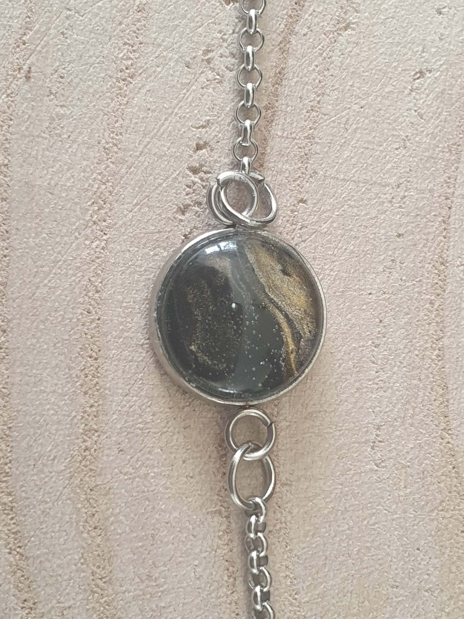 Les nuances profondes de noir contrastent avec l’éclat argenté du métal pour créer un bijou intense et contemporain, à la fois sobre, puissant et raffiné.