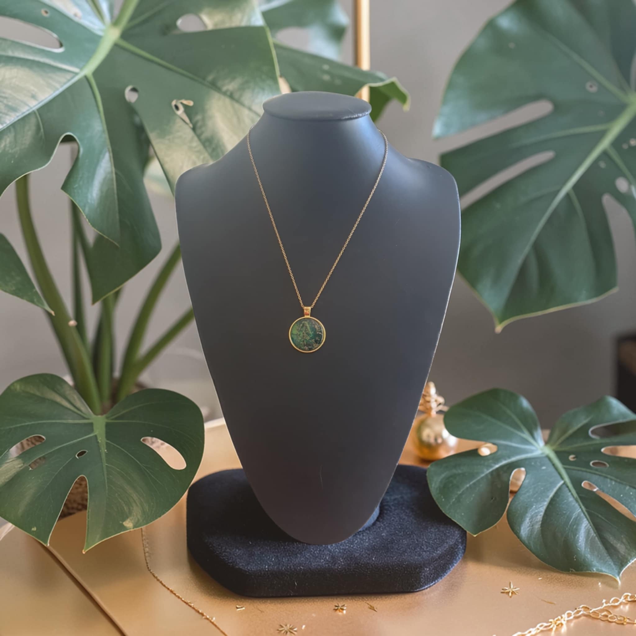 Collier doré artistique Marbre Vert – Bijou unique